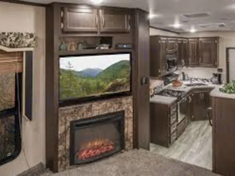 I have a unique 5th wheel set up. When you enter the trailer the living area is upfront with a TV and fireplace. The kitchen is in the middle. Walk through the full bath to the bedroom with king size bed. I have a total of 3 TV's (one outside with a small outdoor fridge behind it. Unit is self leveling and has solar to help if you plan on camping with no power.