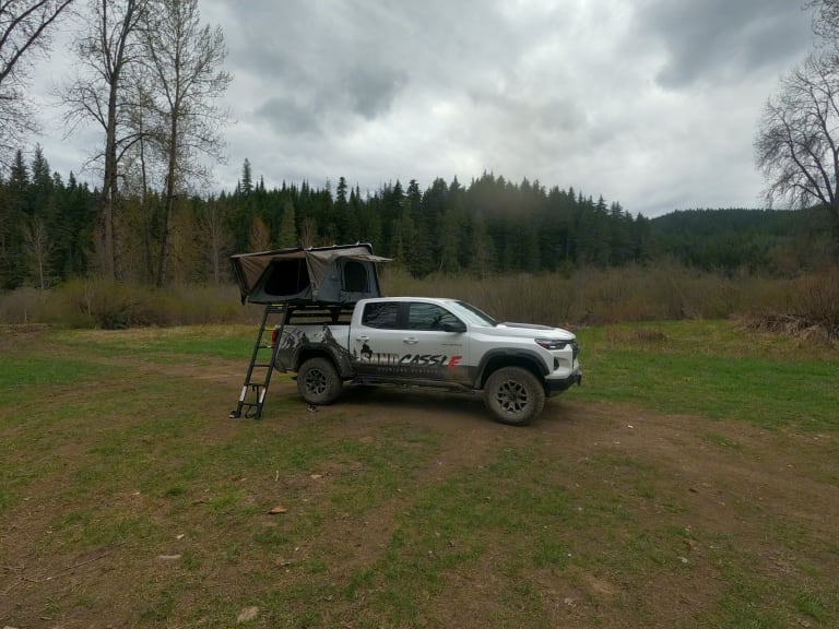 This is our 2024 Chevy Colorado ZR2 “Ghost.” She is set up for whatever PNW adventure you are looking for. The tent is easily set up within a couple of minutes and broken down within 10 minutes. This is the rig you’re looking for if you want to get places that are not accessible by a sprinter van or trailer. Come enjoy any of our national parks, lakes, or rivers. There are no hidden fees. It will fit 2 adults and 1 small child in the tent.Fysa. Tent is removed from November 1-April 15. Truck is available for the winter without the roof top tent.What's included• Roof Top tent with Queen size bed