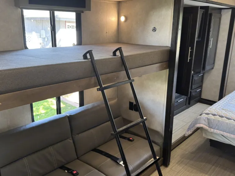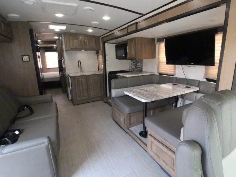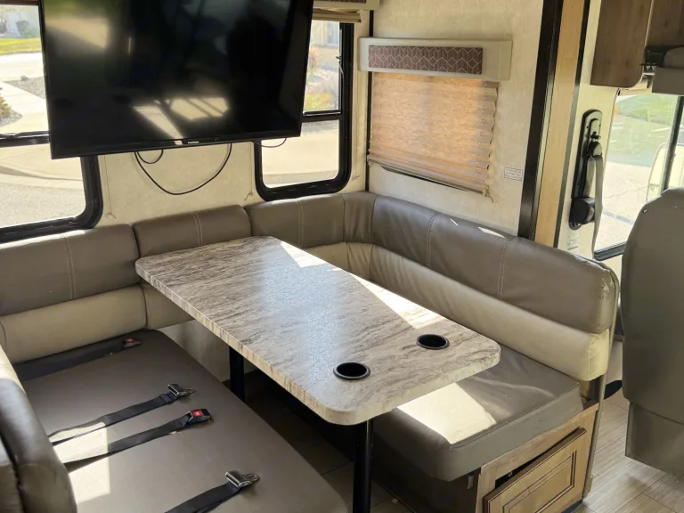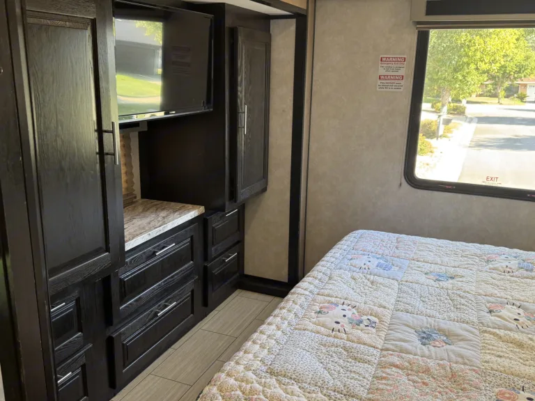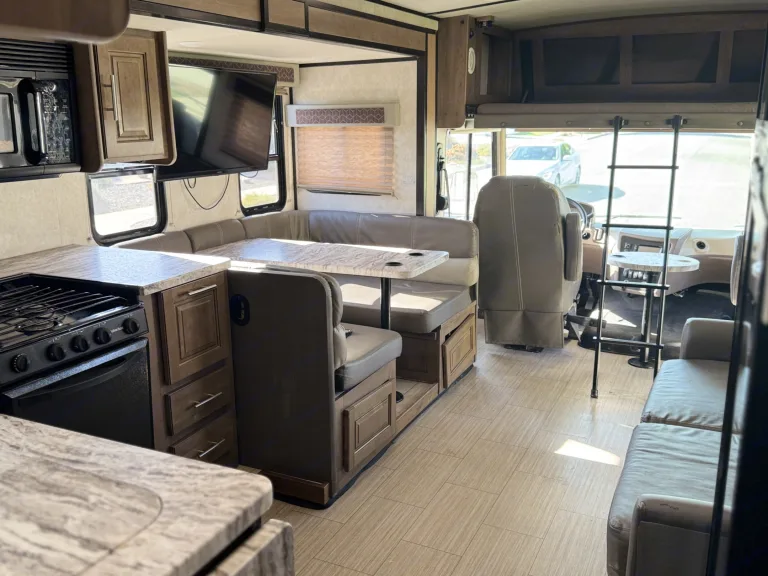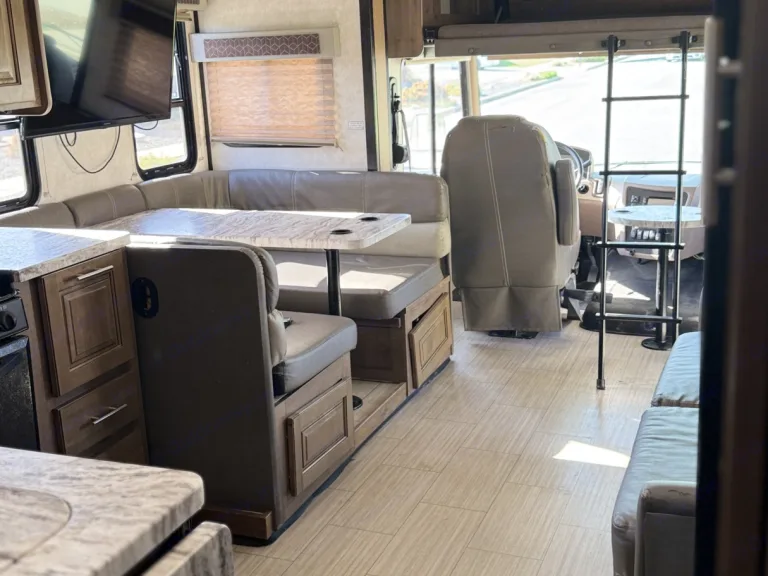 This is THE smartest Floor Plan for Dinner/Games/Hangout, with the Dining Table facing the Couch (rare!).Turn the Driver and Passenger Swivel-Seats around, add three Lawn Chairs and you have a group setting for Twelve people to have a blast together, eating, playing games, and watching a flick on the wall-mounted flat screen.The upholstery is brand new!Our motorhome sleeps TEN!Kids Love the bunks!We have a King Bed in the Master Bedroom, Full-size bed up top over the cab, two Pull-out Couches, and one Dinette Conversion bed.It's a total Slumber Party ON Wheels.Fill the large, Ice-Cold Fridge & Freezer with your favorite steaks, seafood, drinks, and desserts.If your trip is longer, or you have more travelers, let us provide you with a large ice-chest or two for more grub and ice to keep it cold.Woof down your s'mores and hot cocoa, while falling asleep watching your favorite movies on our Outdoor TV.Wash your yucky feet and your muddy kids with the Outdoor Shower.Bring lots of stuff cuz we have Lots of storage!And enjoy the ride because our big beauty Drives like a Dream!NO special license required. You just need a good driving record and a dose of Humble confidence. It's 34 feet long and your friends and family are counting on you to keep them safe.If you're a good driver, you can do it.We'll give you a thorough driving lesson and soon you'll love championing the freeways in your mobile vacation house while looking forward to the nightly reward of sheer outdoor and indoor relaxing enjoyment with family and friends.If you're not a good driver, you're probably good at other things. It's okay. But let someone who is good at driving and loves it captain the ship for this trip. You can be in charge of the luggage or something.WE Also Deliver! But be ready to take out a small loan. But do it! Your time is worth it and our driver needs a raise so he can afford to rent our motorhome.What's includedBig Fridge, Oven/Stove, Microwave, Full Kitchen Supplies, 52-gal Water Tank, 5500-watt Generator, Bunk BedsWe can also accommodate your desires for extras with these options:• RV-connected gas bbq grill