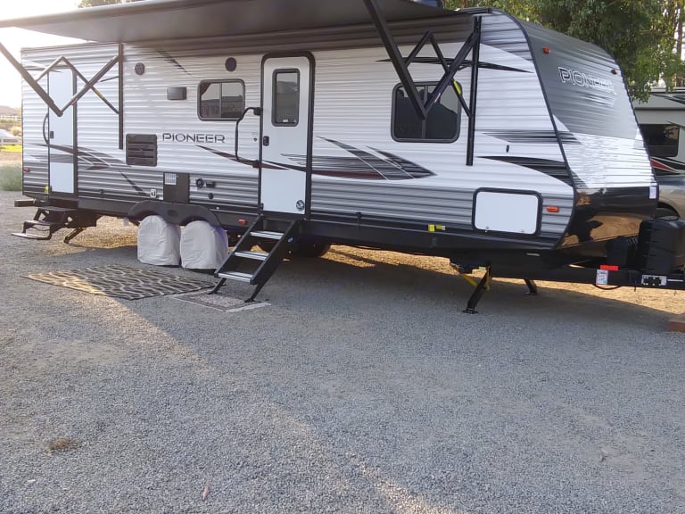 Brand new 2021 sleeps 8 ( possible 10) wood flooring easy to clean, indoor and outdoor showers, inside small bathtub ,2 enter and exit doors, smoke alarm , outdoor TV hookups, many storage area, outdoor rug, electric jack and stabilizers, 2 propane tanks, generator and small gas grill available for rent.What's included2 camping chairs, outside rug, hitch and ball.RecommendationsFisherman's retreat, wilderness in Menifee,little creak all has full hookups and stores , laundry room and food Other things to noteGenerator rental available $45 a day and also BBQ grill (gas) available to rent $15 a day .