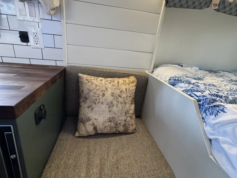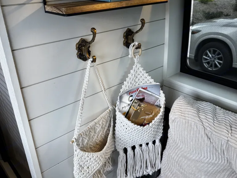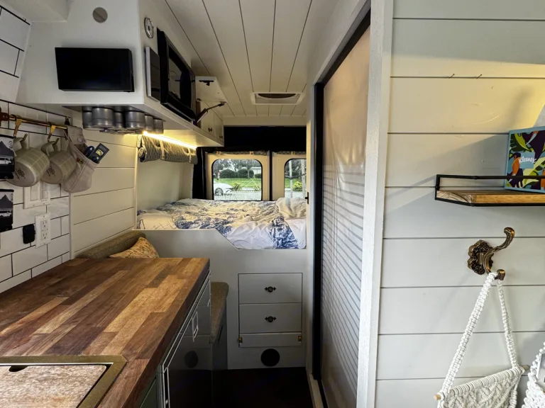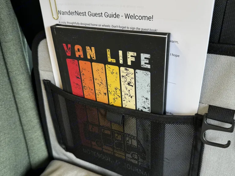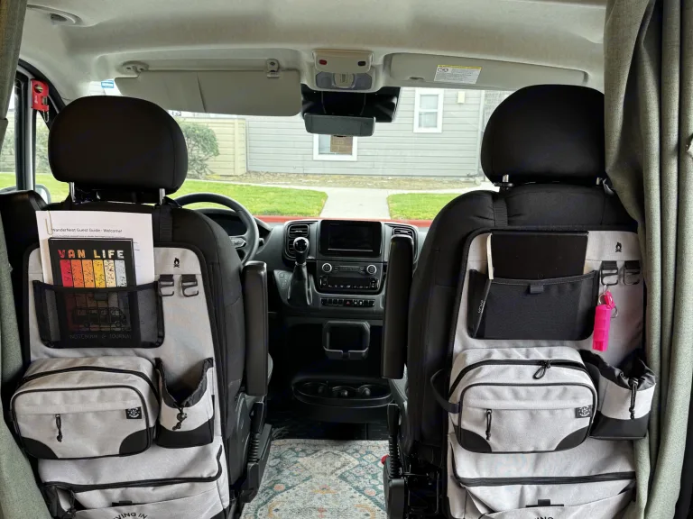 3) The toilet is dry flush - you do not need to empty any compost, turn compost, empty grey water, or anything! I will show you how to manage it. Think diaper genie - no bad smells and no seeing waste - ever.Elevated Comfort, Everywhere You GoStep inside and immediately feel the difference. WanderNest features a beautifully finished interior with high-quality materials, smart storage solutions, and refined details throughout. The space is airy, calm, and functional, every element chosen to make living on the road feel effortless.Up front, luxury captain’s chairs swivel to create a comfortable lounge and dining area, paired with a dedicated table perfect for meals, working remotely, or planning your next stop.A Kitchenette on WheelsCook, prep, and dine:Full sink with running waterAmple counter space for real cookingGenerous cabinetry and storageRefrigerator and dedicated food storageA plug in convection stoveA microwaveA coffee makerWhether you’re making coffee at sunrise or preparing dinner after a beach day, everything you need is right at hand.Private Bathroom + ShowerEnjoy the convenience and privacy of an onboard toilet and shower, eliminating the need to rely on camp facilities. Clean, discreet, and thoughtfully integrated, this feature alone transforms your trip, especially for longer stays or remote locations.High-Tech, Always ConnectedWanderNest is built for modern travelers who don’t want to unplug unless they choose to.Multiple plugs, USB ports, and outlets throughoutA Wifi Booster - you use your hotspot and the booster will help boost signal, no sign in requiredPower systems designed to keep everything running smoothlyPerfect for remote work, streaming, navigation, or staying connected while exploring off-grid destinations.Outdoor Living, RedefinedExtend your living space outside with a retractable awning, ideal for beach days, lakeside lounging, or shaded meals at camp. Create an effortless outdoor setup, no extra gear required.StorageUnlike many camper vans, WanderNest offers generous, well-planned storage for luggage, gear, groceries, and personal items, so you can bring what you want without cluttering your space.Why Guests Love WanderNestLuxury finishes and thoughtful designKitchen, bathroom, and showerComfortable seating and dining spaceIdeal for couples, solo travelers, and digital nomadsSeamless blend of adventure and refinementWhat's included• Toiletries (shampoo, conditioner, bath soap)