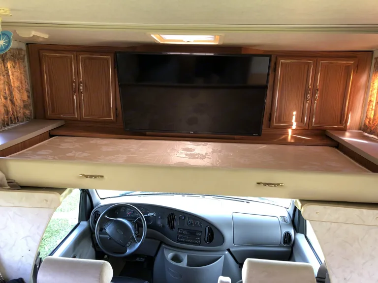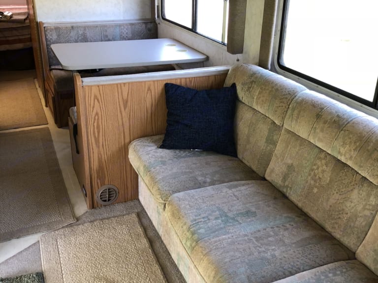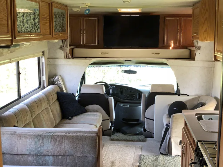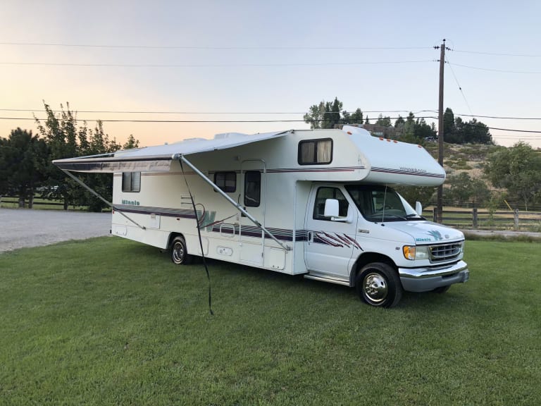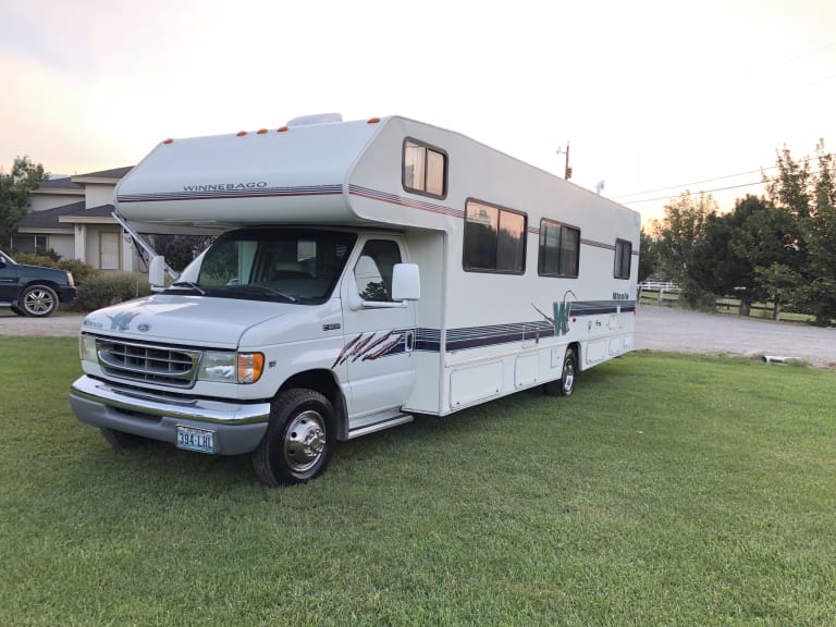 I have a completely self-contained Winnebago 33 foot mini Winnie, has a generator, solar panels, and 3 batteries for back up. It has an indoor and an outdoor shower. A refrigerator and freezer that run off batteries, electric or propane. A large TV in the front room and a TV in the back bedroom, both have DVD players (have lots of dvd’s for adults and kids) and hook up to the antenna for free tv. Air-conditioner is ice cold. Comes fully stocked with kitchen utensils ( pots, pans, knives, forks spoons, cups) and bathroom supplies( toilet paper, towels). Chairs for outside. Lots of storage for your gear. Sleeps 7 people. Has large tanks for fresh water, dark water and sewage. Rv will be full of gas, propane and water(if needed) when you pick it up.