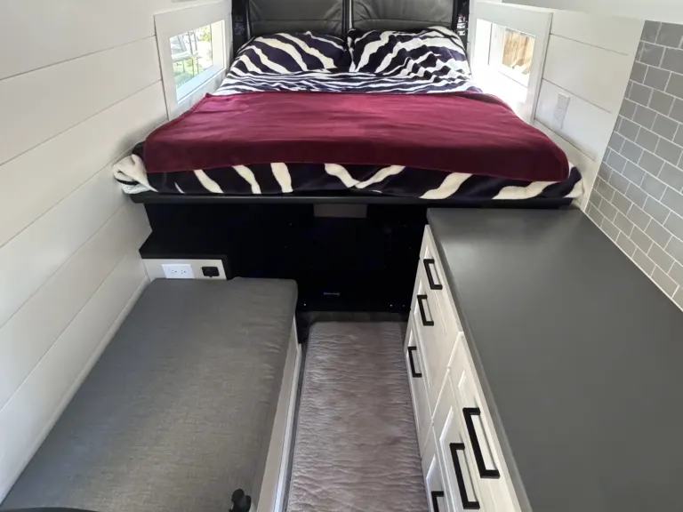 Modern Amenities: Enjoy the convenience of a Velit 12V AC unit, a Dometic Fantastic Fan, and ample USB, 12V, and 120V outlets.