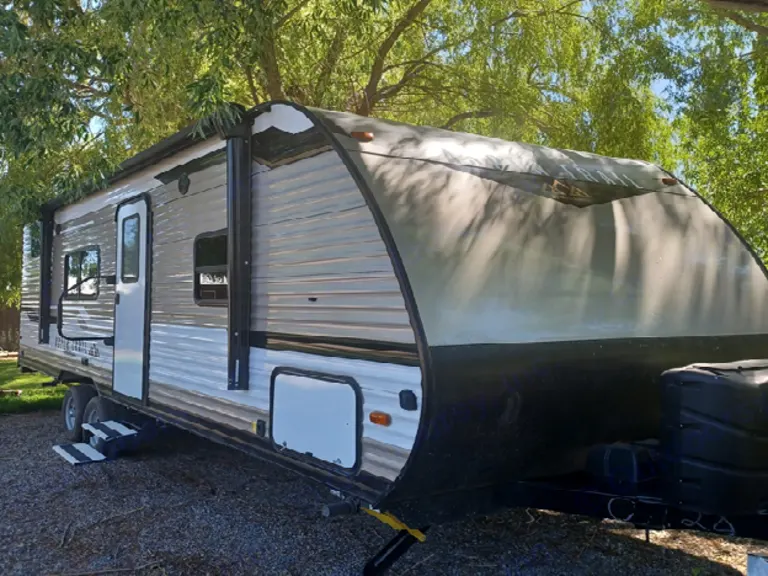 This camper is comfy, light weight and feels like home. It is a 28' ft trailer. Has double sized set of bunks. Sleeps 4 children or 2 adults comfortably. Has the the table that makes into a bed, and also a Sofa that converts to a bed. Has small separate room with a queen bed. Has a 3 burner cook top with a deep kitchen sink. Also has a bathroom with shower. What's includedRental will include Fresh/sanitized made beds. 4 camping chairs. Has an outdoor game called Washoos. similar to corn hole.RecommendationsCamper spends most of it time in the Island park, Idaho area. Also spent some times in Driggs Idaho and Pocatello.Other things to noteCamper comes with 2 fully charged batteries. If NOT going to a place with full hookups, might look into a Generator to keep batteries charged and in working order.