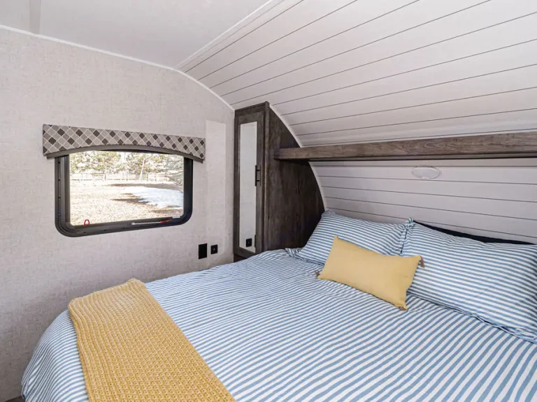 Our new and clean 2021 Forest River Evo is just what your family needs to enjoy the great outdoors. Loaded with all the add-on luxuries, including an electric fireplace and Bluetooth stereo, your stay in our camper will be cozy and comfortable.This rig can sleep up to 5 adults comfortably (if two are willing to share the queen), or if you have a young family like us, you can probably fit up to 6 kids and 2 adults (two on each bunk (double/full-size bunks), two on the converted dinette, and the two adults on the queen bed in the master bedroom). We know a good night's sleep is important, especially for parents on "vacation", that's why we added a 4-inch gel-infused memory foam mattress topper to the queen bed. All linens and comforters are included.Our kitchen comes well-equipped with a fridge, freezer, microwave, 3 burner stovetop, oven, and a decent-sized kitchen sink.All dinnerware, flatware, and cookware, as well as paper plates and cups are provided.For you coffee lovers, there's a Keurig coffee maker with all pods, creamers, and travel cups included.The bathroom has your typical foot flush toilet, a single sink, several hooks to hang up your towels, and a 40" shower and tub combo. Perfect for families with young kids!• Please note that this camper is delivery only.• NEW! We now offer free grocery pickup from Walmart and Fred Meyers. Simply download the app, add our name as a contact, and we'll pick up your groceries! Everything will be loaded and in the fridge when you arrive
