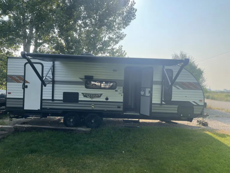 Beautiful 24 foot forest river wildwood x-lite with slideout and awning sleeps 6 to 8 comfortably brand new with warranty and quiet and comfy and everything works great What's includedComes with bed sheets and full of water and propane and generator available upon request and plug ins Other things to noteNeeds sprayed off on exterior and return clean complete
