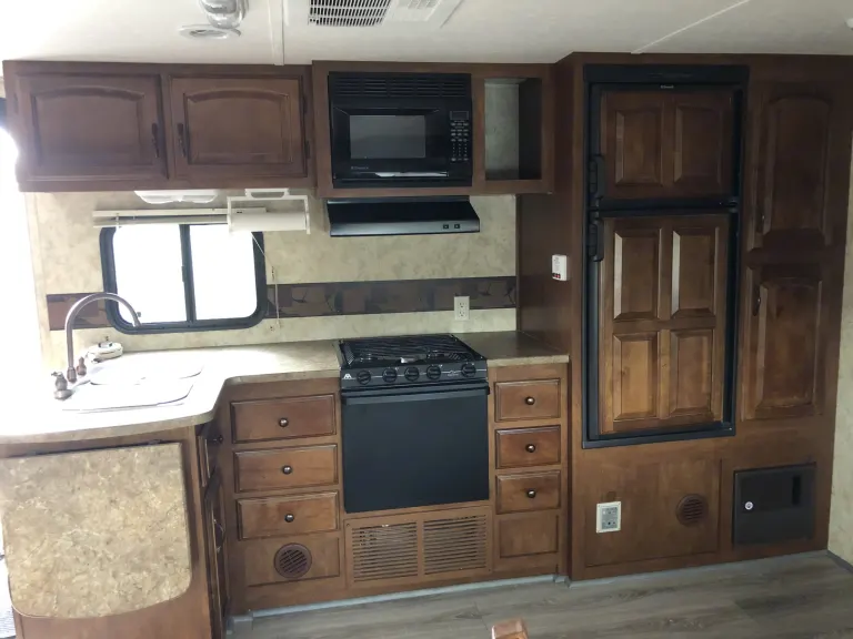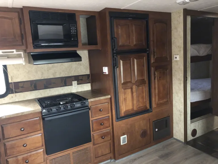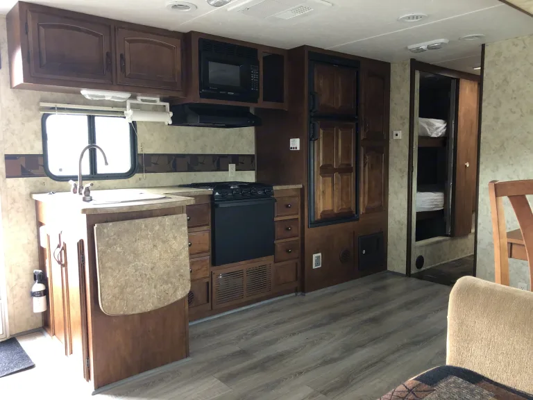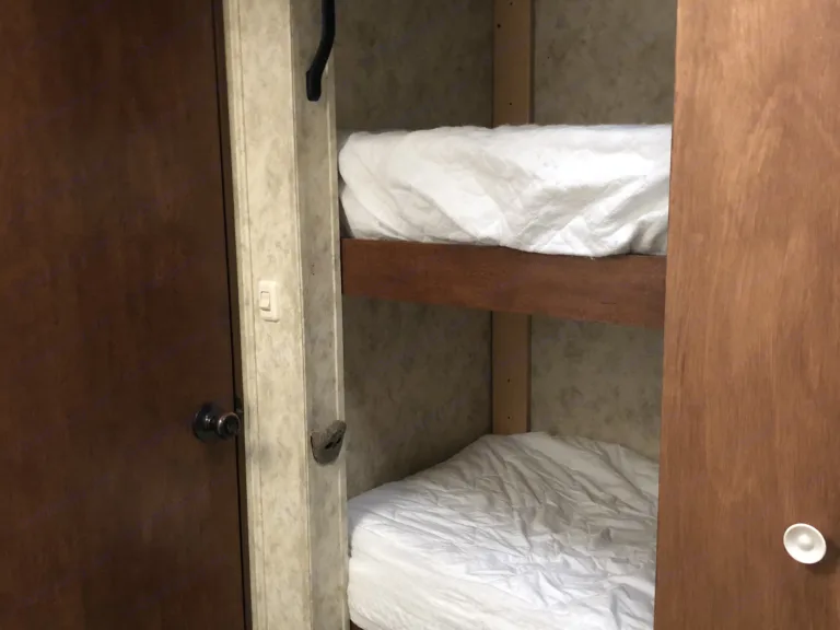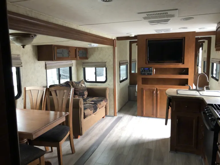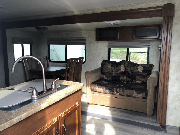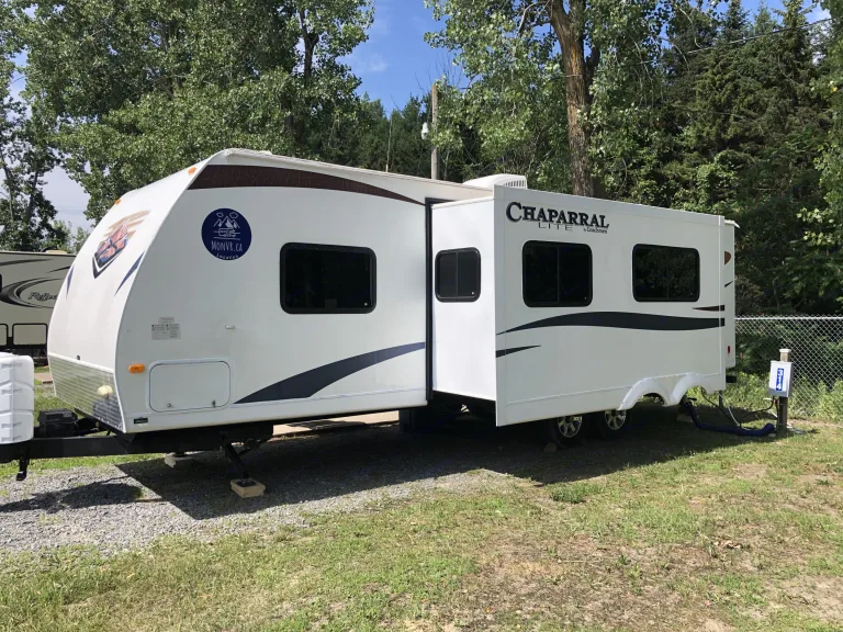 Le camping de luxe à son meilleur.Grande et spacieuse, vivez votre séjour confortablement en profitant de sa configuration digne d'un chalet. Elle peut accueillir 6 personnes et plus. Moderne, chambre fermée, bunk bed arrière (2) et divant-lit pour les dodos en plus d'une grande chambre de bain. Semi-légère (6300lbs), profitez des vacances ou vivez vos rénovation en parfait confort.Eau chaude, AC, auvent, tapis, frigo, lavabo, four, unité télévisuelle en inclusion ainsi qu’un BBQ et ensemble de couvert et casserole pour 6 personnes en option.Tout est prêt pour votre séjour (livraison disponible).