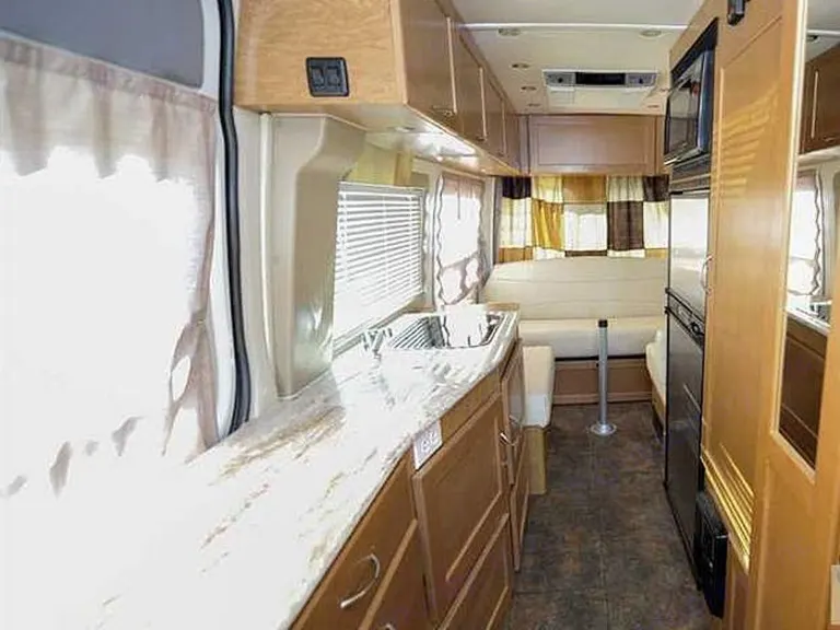 Mercedes-Benz quality. Powered by a fuel efficient Bluetec turbo diesel V6 engine. Great fuel economy, durability, safety, practicality, comfort and quality. Perfect for couples. Sleeps Two, Can travel safely 4 people. Fully equipped with amenities including kitchen and bathroom with shower. Sorry, No Pets Friendly.LED lighting, Exterior Awning and outside shower.11,000 Btu Roof Top Air Conditioner, Low Profile Fan-Tastic Fan, 16,000 Btu Auto Ignite Lp Furnace.Kitchen: 3-Way Six Cubic Foot Double Door Fridge, Microwave/Convection Oven, 2 Burner Flush Mount LP Stove, Single Lever Faucet, Stainless Steel Sink, Corian Counter Top, Full Extension Ball Bearing Drawer Glides, Flip Up Counter ExtensionRear Sitting Area : Power Sofa with Two Three Point Seat Belts converts in to a King Size Bed, Memory Foam Cushions. LCD TV, 24″ On Swing Out Arm. Blu Ray Player, Cable TV Hook Up, Home Theater audio