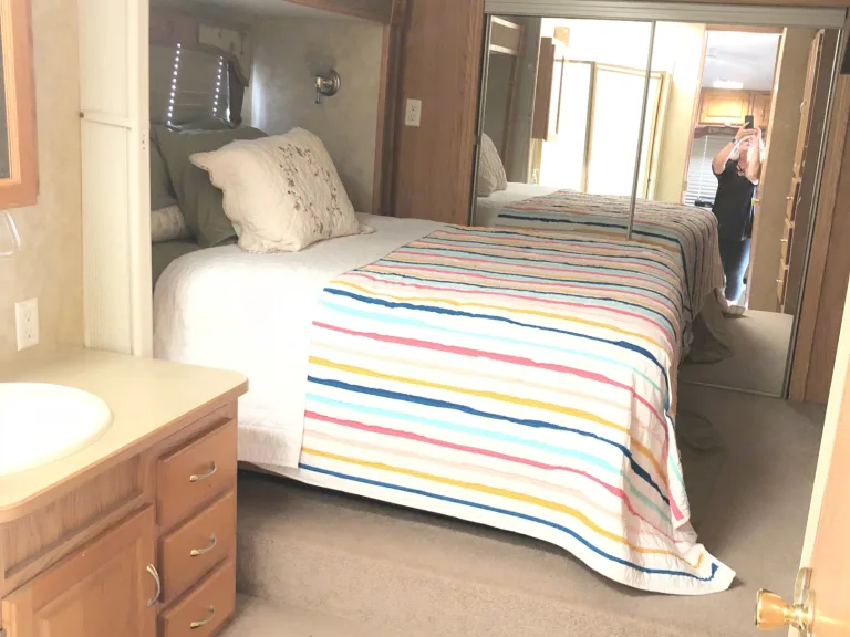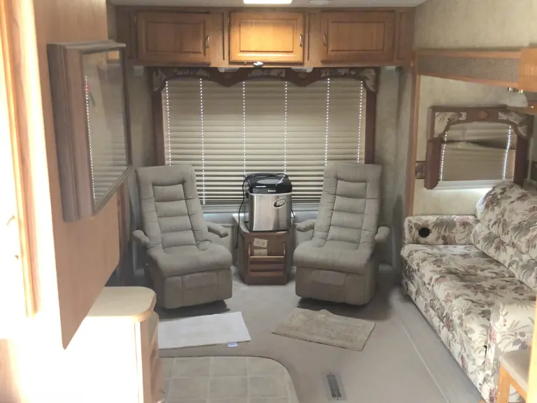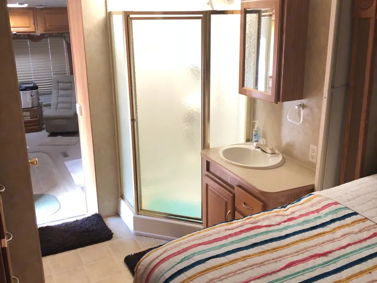 The cozy cottage is a beautiful 2008 Jayco Eagle very spacious open floor plan with a dinette , foldout sofa, with two lazy boy recliner’s . Fully functional kitchen with large refrigerator freezer .Has carpet throughout living area and in the master bedroom . Oversize shower with bathroom sink and private access to toilet room the master bedroom is a full size queen with large storage at foot of bed with two full-size Closet door with mirrors .This camper is very comfortable and cozy we do allow you to bring your pets , it is pet friendly also has an awning the 2Oft .(240in .) this camper sleeps 4 comfortably also has three slide outs two in the living area one in the master bedroom . Also have a 40 inch TV in living room with a smaller one in master suite.