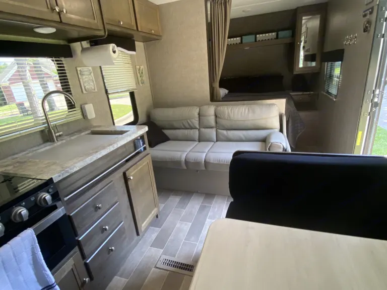 Upgrades across the interior to include reupholstered valances, tile backsplash in the kitchen, hydraulic lifts on cabinets, and much more. Outdoor hot / cold shower also makes washing off after the day’s adventure a breeze!