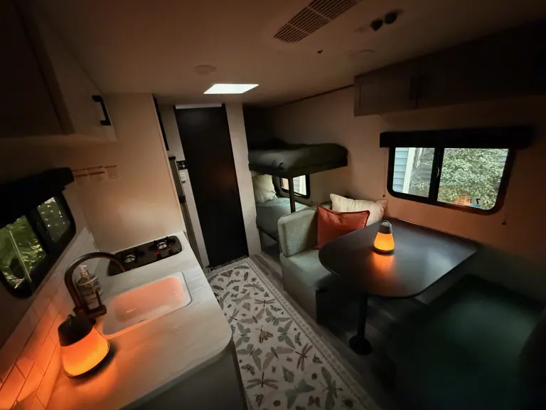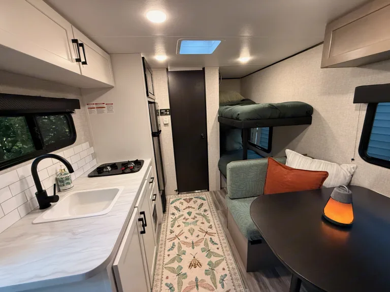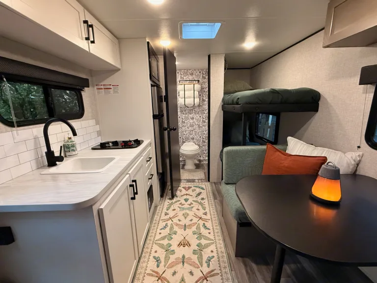 Make your next adventure stress-free and memorable in our 2025 Jayco Jay Feather 17Bhsl! Perfect for couples or families (even the furry ones), this lightweight trailer is easy to tow yet packed with comfort. Inside, you’ll find a beautifully decorated, cozy space that feels like a little home on wheels — with a comfy main bed, bunk beds for the kids, and a convertible dinette.We’ve thought of all the little details to make your trip special: from a marshmallow roasting kit and fun games for nights under the stars, to Bluetooth lantern speakers that set the mood at the campsite. Whether you’re cooking up a meal in the kitchen or just relaxing outside in the included chairs, everything is ready for you. Just bring your clothes and food — we’ve got the rest covered.What's includedCooking essentials (pots, pans, utensils, dishes, coffee maker)
