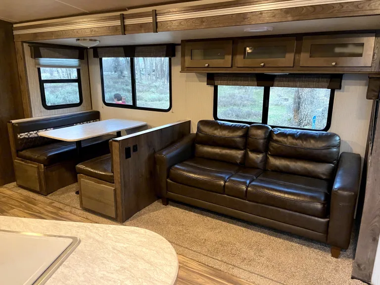 Have your next Family Adventure with our wonderful 2019 MPG Travel Trailer! with a wonderful control panel and ambient lighting for nightime, makes for a relaxing nigh in after a day of camping. The trailer has 1 slide out and 2 bedrooms.The trailer has a separate master suite, for when you need some alone time! The Master has a real mattress (not an RV supplied one). You will find plenty of wardrobe space and plenty of room on each side with the built in end tables.Kids will love the separate bunk house room! It has 3 ready to sleep bunks with reading lights and chargers and their own table to play or eat at. There's drawers for clothes and some open cabinet areas to store their trinkets.We have a little one so are able to provide some assistance for little campers if you let us know. :)For extra sleeping the kitchen table lays down into a bed and the comfy leather couch also reclines down into a bed.The kitchen comes fully stocked with everything you need to cook! There's plenty of cabinet space throughout the main area. A fridge, freezer, 3 range stove, microwave and oven.Outside the trailer enjoy a electric powered Awning (user takes risk of any damage to the Awning) with a beautiful LED strip. Also enjoy the outdoor kitchen complete with a mini fridge and grill!What's included