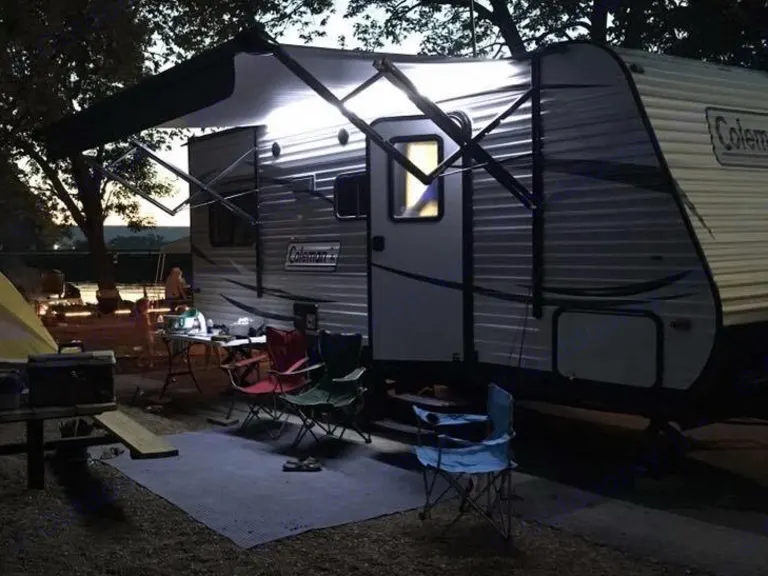 19 ft Colman, full bath and kitchen, great camper for trips with the family. Every rental includes rocu box with the tv, 5 folding chairs, small charcoal grill, bag of charcoal, cooking utensils and plate ware, folding table and outdoor rug, extra blankets, lantern and one bundle of firewood.