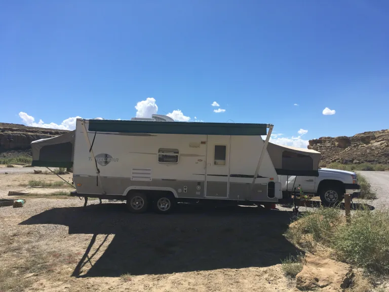 Family, hunter, first timer and pet friendly lightweight bumper pull travel trailer.This extra spacious expandable trailer gives you 29ft when popped out making it a great lightweight family trailer. Comes with 2 queen beds, 2 full beds (table and couch), full bathroom, hot water heater, A/C, heater, and kitchen with freezer/fridge. Lots of storage to keep things tidy. Washable kitchen-wears (pots, pans, plates, bowls, cups, s’mores sticks), grill and coffee maker provided. All you need to bring is bed (or sleeping bags) and bathroom linens, food, toiletries, clothing and your sense of adventure. Happy to answer any questions.Must be able to tow 5000 lbs