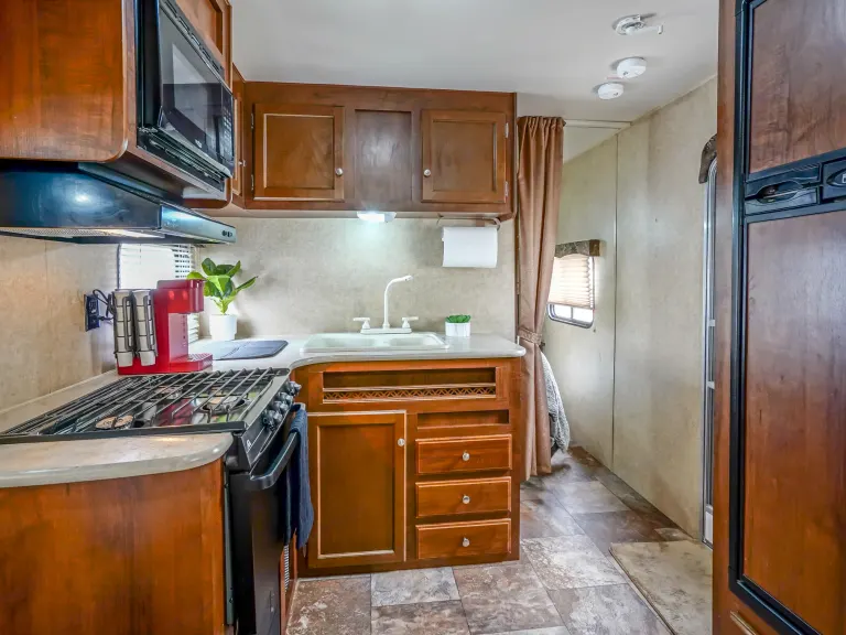 6 gallon water heater can be heated with propane and/or electric.Hey Rover... Furry Co-Pilots Camp Free On Prior Approval!If you have any questions, please feel free to reach out to us, Curtis and Lisa. We can usually answer questions quickly.Please return this travel trailer in the same or better condition that it was in when you picked it up. This means thoroughly cleaning the inside and dumping tanks. What's includedIncluded amenities: