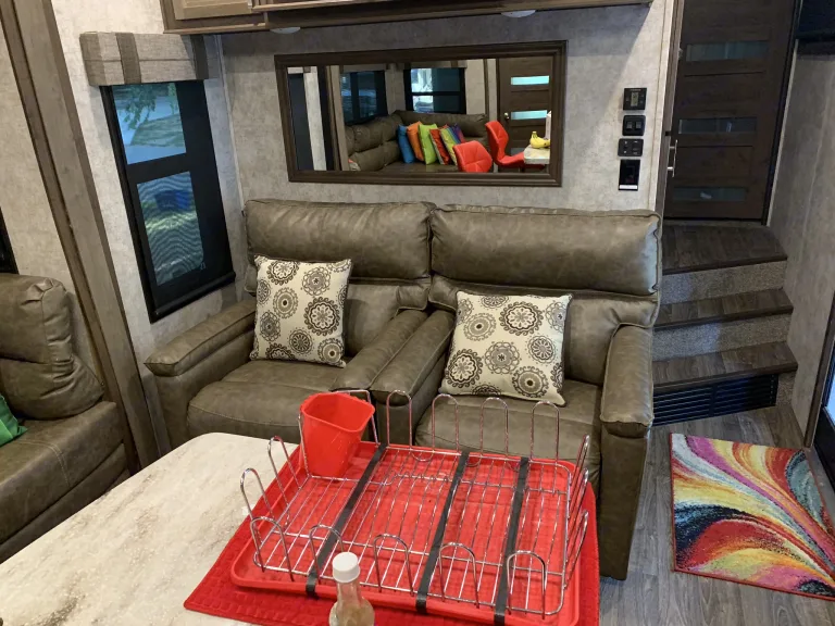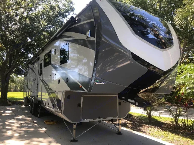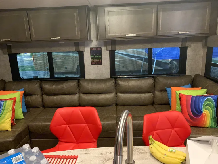 Lots of room inside with 5 slides, residential refrigerator with ice maker, separate ac in the master bedroom, master bedroom has a tv ,large bunk house, bath and a 1/2 ,outside kitchen with a refrigerator ,Fresh and clean and ready to go on your next adventure.What's included COVID 19- CLEANEDFresh linens, pots and pans, seasons, has an ice maker, coffee maker, cleaning supply'sOther things to notesorry no pets, no smoking, treat it like its your ownthanks