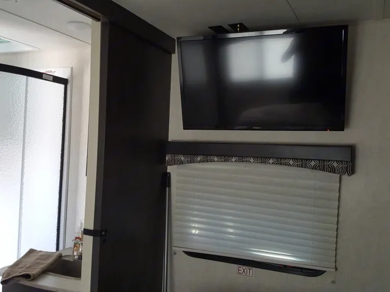 Open floor plan, living area is very room. Small bathroom. Slide out dining room and kitchen area. Queen bed room. Dining table turns into small bed (perfect for a toddler). Outdoor speakers . Extremely clean.Other things to noteWe offer delivery as well, 150 (minimum) delivery charge. (local mileage deliveries)