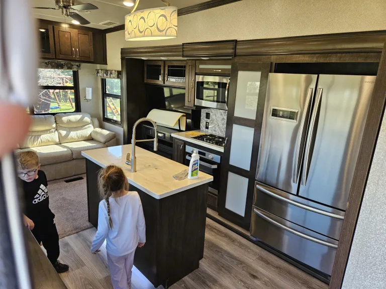 Looking to tailor rentals to full delivered setups, EAA in Oshkosh and possibly other week-long type uses.This rear living / mid-bunk layout has good seating with a full size sofa and reclining theater seating in the living area while the mid bunk still adds that private space for the younger crowd. Tons of sleeping with a master king bed, queen pullout in the living area, a full size pullout in the bunk room, and the kids love hanging out in the loft area.Ammenities:Interior: