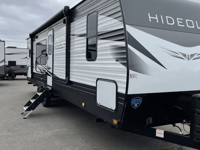 29’ hideout with a queen bedroom up front, a couch that converts and a dining area that converts, full size kitchen, two leather recliners and a large tv with roko. And an outside kitchen and lots of storage space underneath, electric fireplace and/or gas furnace, and full air conditioning. What's includedFurnished with plates bowls and cutlery for your camping needs. Power protector and sewer and water hoses all included.Other things to noteNo pets or no smoking is a must, otherwise enjoy your camping.
