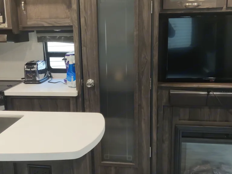 Pet Friendly with four slides. Furnished with all the essentials. Outdoor kitchen, lighted awning. Separate bunk room for sleeping or an office. Large U-Shaped Sofa converts to sleeping or has two tables for dining. Electric fireplace, TV, Blu-ray player which connects to the internet for streaming. 338 Square feet of living space. Other things to noteNo Smoking Allowed.