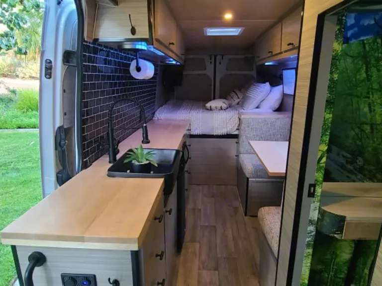 Brand new built with all the luxury and amenities you need for a spectacular and comfortable getaway. This Sprinter Van is equipped with the very best materials and comfort equipment available. This van is excellent for off-grid camping, quick get-away’s, music festivals, mountains, tailgating and hard-core adventures into isolated areas. PET Friendly!• Zinus 10 Inch Gel-Infused Memory Foam Mattress for exceptional sleeping comfort