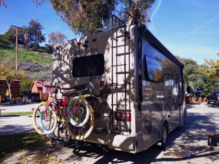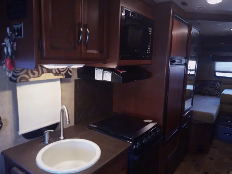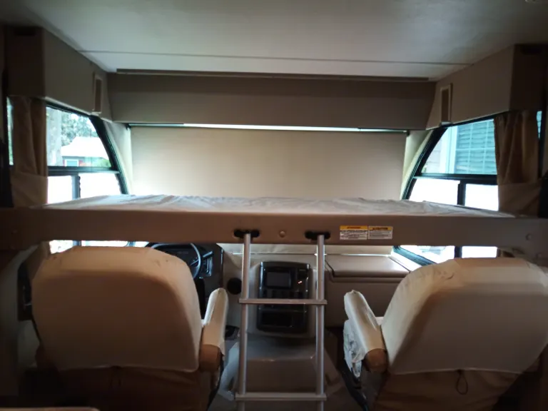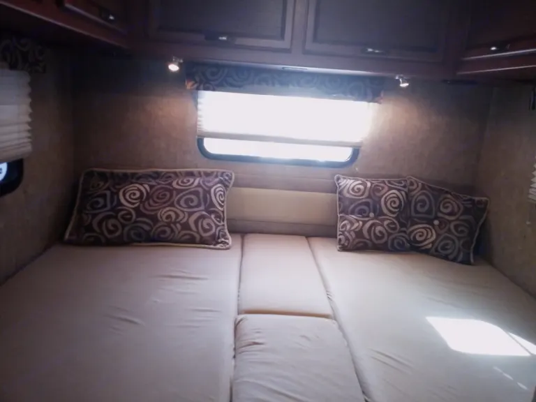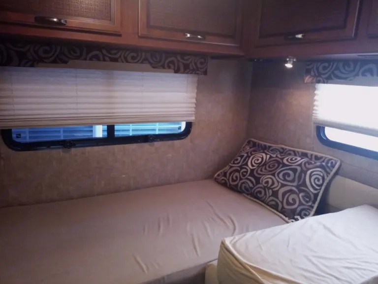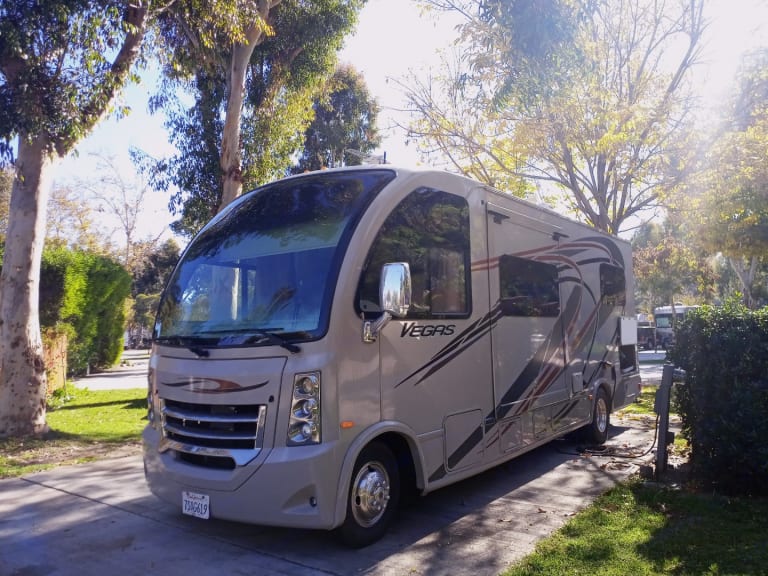 2014 Thor Vegas 24.1. It's 25 ft long. Class A body on class C chassis make this RV easy to drive. 7 ft wide and 11 ft tall. It has a living room slide out. It can sleep up to 5 people and seat belts for 5 people as well. Foldable bike rack in the rear hitch. For clarification, this RV is classified as class A due to the shape of the body. However, it is smaller than traditional class A RV. It's much closer to a class C RV.Early pick up and late drop off is available.Inquire with destination, number of persons traveling, and if you have any prior RV rental experience.Holiday/weekend rates may vary during busy season.*Cleaning fee* is required and will be charged upon returning of the RV.