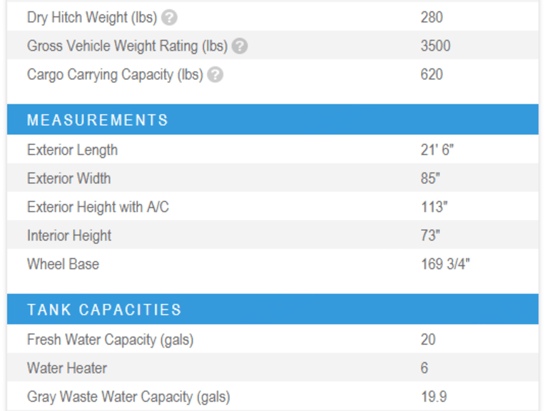 Unloaded vehicle weight only 2930 lbs! Can be pulled by most V6 vehicles. Must have electric breaking system on vehicle pulling trailer. Sleeps up to 5 people. Trailer NOT for use for festivals or concerts. Family use only. There is a $25 increase per night on holiday weekends.