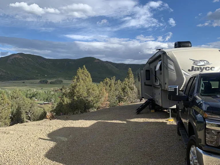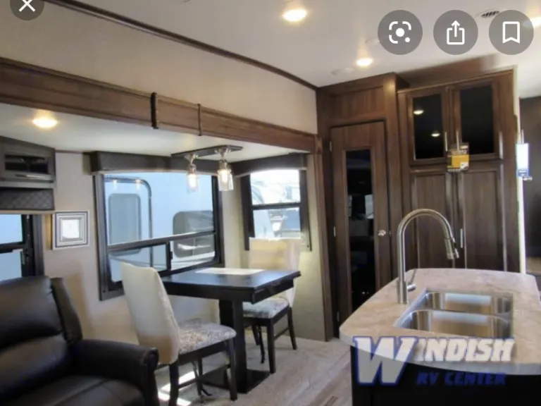 Clean, comfy home on wheels. Easy set up and takedown. Electric leveling, power awning, 2 AC units keep the rig nice and cool. TV’s in living room and bedroom. Nice island kitchen, fridge works on either propane or electric perfect for boon-docking. Will deliver and pick up for an extra fee. Call for details. What's includedLinens, chairs, pots/pans dishes for your enjoyment while you camp.