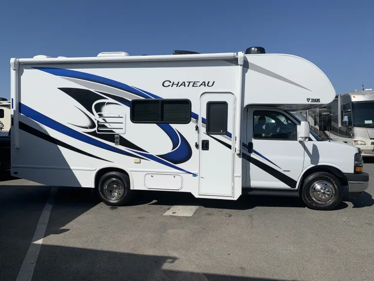 Explore with ease in our 2022 Thor Chateau 22B, a modern and compact Class C motorhome that’s perfect for families, couples, or first-time RVers. At just over 24 feet long, it’s easy to drive, park, and set up — without sacrificing comfort or features.This RV comfortably sleeps up to 5 with a rear queen bed, cab-over bunk, and convertible dinette. A slide-out expands your living space so you can relax after a day of adventure. You’ll have everything you need: a fully equipped kitchen with a stove, oven, microwave, and fridge, plus a full bathroom with a shower, toilet, and vanity.Enjoy outdoor living with the power awning and LED lighting, and take advantage of the onboard generator and large fuel and water tanks for off-grid camping.Key Benefits: