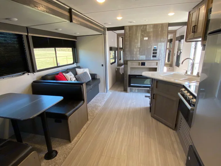 2021 Keystone Hideout bunk house. This Hideout is ready for having a great vacation and making memories! There is a separate master with door and a queen size bed. Additional sleeping includes two full size bunks that can easily sleep adults. The dining table and leather couch both fold down into additional beds. The kitchen comes fully stocked with dishes, pots, pans and the necessary utensils. The microwave, stove and oven are ready to make a fantastic dinner no matter where you are camping. Spacious fridge and cabinets for all of your food as well as plenty of storage space for extra items needed for adventures. Items that are provided include fresh linens, towels, washcloths and games.After you come back from the days activities you can shower in the bathroom or take advantage of the outdoor shower option. The camper has air conditioning, heater, hot water system, awning with LED lighting, TVs and outdoor radio for having a good time! You will love spending a weekend or even longer in the Hideout! Upon booking, please give us a few details of the guest makeup that will be on your trip. We would love to include a custom gift to remind you of the best trip ever.What's includedFull Linens for queen master and 2 full bunks