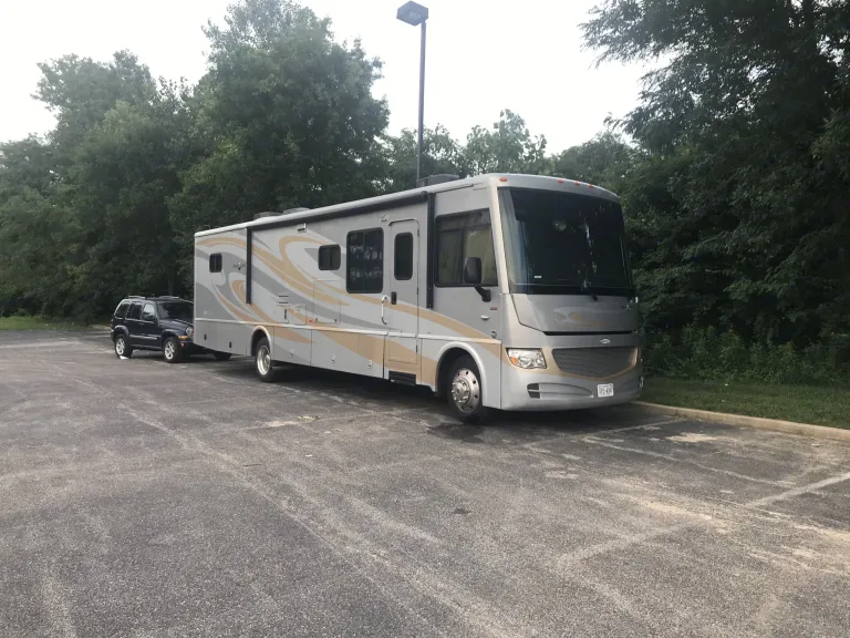 All the comforts of home! Our coach is a 37' gas powered Class A Itasca Sunova. King sized bed, plus a couch which make a double bed and the table also makes a bed. Sleeping six comfortably, we also stow an air mattress for someone who may want to sleep on the floor. Four TV's, including a 42" and an outside entertainment center, give you lots of opportunities for watching, and a 20' awning makes a nice place to put the rug and chairs outside. Not just one rear camera, but two side cameras as well. Two air conditioners with a 5,500 generator to power them when you are not plugged in. Plug in with either 50 amp, 30 amp or just a 110 cord for lights etc. So much more! Small pets are negotiable.