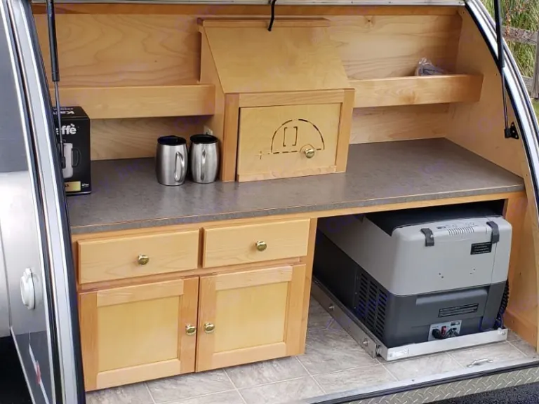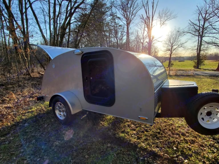 The Little Guy Silver Shadow is a retro-style teardrop camper that will make your next camping trip a memorable one. With its sleek silver exterior and modern amenities, this teardrop camper is perfect for those who want to experience the great outdoors without sacrificing comfort and style.Inside the Little Guy Silver Shadow, you'll find a cozy cabin with a queen-size bed, storage cabinets, and a full 12v power system to keep all your devices running. The cabin is also equipped with LED lighting, a vent fan, and a powerful air conditioning unit, ensuring that you stay comfortable no matter the weather.The kitchenette is located at the back of the camper and comes fully equipped with a single burner stove, french-press & coffee grinder, a mini-fridge/freezer, and plenty of storage space for your cookware and utensils. You can cook up your favorite meals while enjoying the view outside the large panoramic window.The exterior of the Little Guy Silver Shadow is just as impressive as the interior. It features a sturdy aluminum frame and a beautiful silver finish that is sure to turn heads at the campsite. The teardrop shape is aerodynamic, making it easy to tow and maneuver, while the 16-inch wheels provide a smooth ride on any terrain.If you're looking for an unforgettable camping experience, look no further than the Little Guy Silver Shadow. This retro-style teardrop camper is available for rent and is the perfect way to explore the great outdoors in style and comfort. Whether you're planning a romantic getaway for two or a fun family vacation, the Little Guy Silver Shadow is sure to exceed your expectations.There is extra hitch on the rear where a bike rack can be mounted!What's includedOur teardrop includes everything you'll need for a great trip : Butane Stove, Pots, Pans, Dinnerware, Utensils, French Press coffee maker.