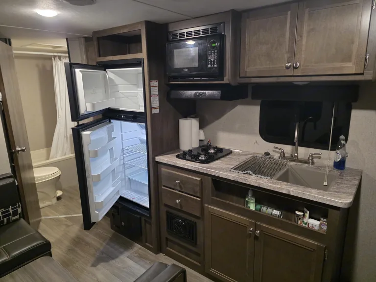 - No break controller or receiver on your truck? I'll provide them! Just ask.- Has rear bumper racks to carry your bikes or kayaks.- Modern Interior, and exterior: Air Conditioner (Needs electric campsite), Gas water Heater, 16' Power Awning with LED Lighting,