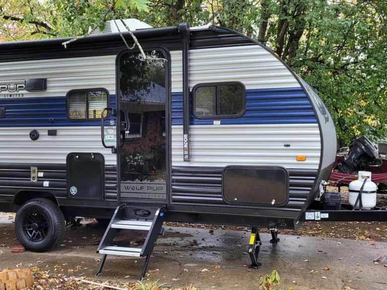2022 Forest River Wolf Pup 18TO.Imagine a large slide with a booth dinette and sofa for extra lounging and walking space in this Cherokee Wolf Pup travel trailer. Now imagine you are sound asleep in your own queen bed while the kids sleep on the main furniture. Everyone can wake up to the smell of pancakes being made on the high-output cooktop and bacon being made in the microwave. Then, you can take turns getting ready in privacy in the bathroom before making your outdoor plans. You will find plenty of storage for your clothing and such on the shelves and inside the overhead cabinets, and there is also storage space along the exterior in the outdoor storage areas.You are going to love the journeys you'll take and memories you'll make with the Forest River Cherokee Wolf Pup toy hauler and travel trailer! The back-up camera system is going to make it very easy to maneuver into the campsite, and the outside shower with hot/cold water will help you clean up while you are outside playing. The stereo has interior/exterior speakers so that you can listen to your music from just about anywhere, and you even get a Cherokee Total Control app and remote control system so that you can be in charge of your trailer's functions without much effort. The Cherokee Wolf Pup has a seamless roofing membrane with heat reflectivity, and the outside storage door is going to allow you to bring a little extra gear.This trailer would better accommodate 4 adults or 2 adults with up to 4 to 5 children depending on their age.What's includedFresh linens, bath towels, basic kitchen utensils and dinnerware for 4 people.Other things to noteRules of the road:NO SMOKING. Any evidence of smoking will incur a cleanup charge which will be withheld from security deposit.