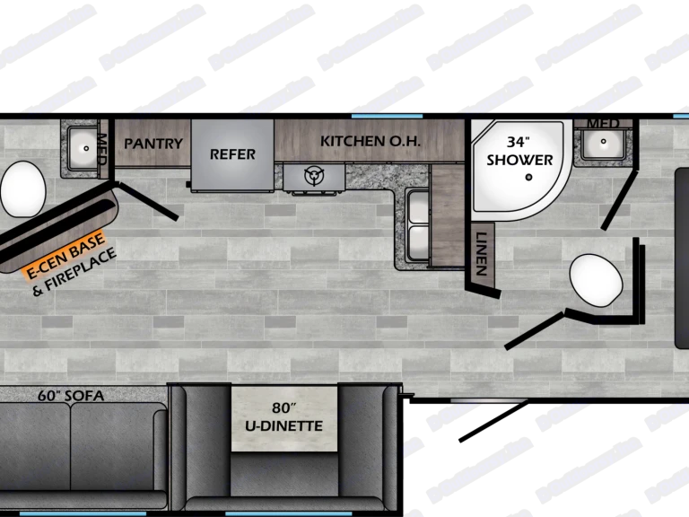 - 2 A/C'sOnly 1 fireplace. This camper will provide your family, or 2 families all of the room you need to camp, cook, and clean up. We will provide the safety equipment to tow the camper with your 250/2500 or 350/3500 truck.