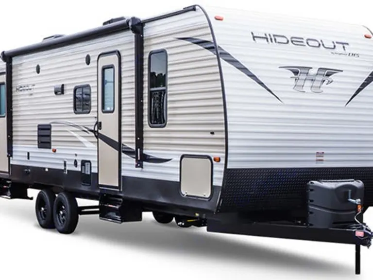 2020 Keystone Hideout 258LHS, This NEW 2020 Hideout has 1 large slide out, 2 door entry, full kitchen, full bathroom, 1 bedroom, self contained, sleeps 6. Rear Kitchen has 3 burner stove top with oven, microwave, 2 door fridge/freezer, large pantry, booth dinette that can be converted into a bed for extra sleeping space, cabinets and drawers for all your food and dishes.The living area has a couch that can also be converted in to a bed for extra sleeping space, fire place, stereo with AM/FM/BT, DVD player, interior and exterior speakers. This unit features a 32" HD LED Roku Smart TV in the living room.The bedroom has a spacious queen bed with under storage, 20" HD LED Roku Smart TV , 2 T-shirt closets on each side of the bed. The bedroom also provides an exit/entry door.The Hideout is also equipped with a large power awning, power tongue jack, front and rear leveling jacks, outdoor kitchen with fridge and 2 burner grill exterior shower, back up camera ready, out door storage, spare tire and carrier.What's includedWe offer complementary dishware, glassware and utensils. A variety of cookware and essential items for your dinning needs.