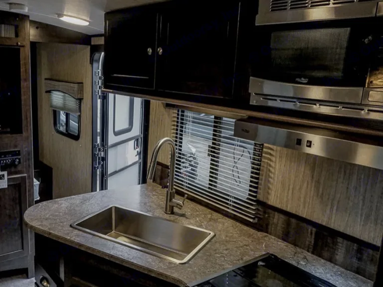 Easy to use power awning with LED lighting and a large outdoor awning mat. Outdoor kitchen with mini fridge, sink and dual burners. Quick connect BBQ is available as an add on.Towing/Mechanical: