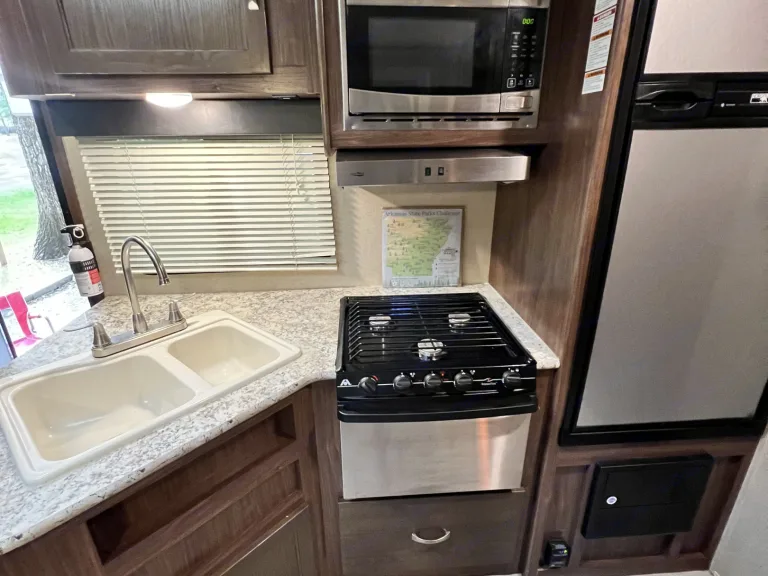 Our family loves this RV! The queen bed comfortably sleeps two, and the dinette transforms to a bed for a child or two. The front bedroom, coupled with the rear bathroom, reserve the center section (with the slide out) for food and fun. The RV is in excellent condition and is certain to be as enjoyed by your family as it is for ours!Let us set up this RV for you to use at a campsite in Central Arkansas. We provide especially economical options for the Lake Maumelle /Arkansas River - Murray Lock and Dam RV Park.Updated pictures coming soon!What's includedWe provide an assortment of board and card games, DVDs, and essential kitchenware items to make this an easy, comfortable, and fun rental from our family to yours. Fresh linens and two camping chairs are also included. Let us know if there’s something else you need for a pleasant stay.RecommendationsThis RV loves Central Arkansas. We frequent Petit Jean State Park, Lake Catherine, Lake DeGray, and Lake Maumelle /Arkansas River - Murray Lock and Dam RV Park.Other things to noteWe focus on customer service, which to us means quality, comfortable, and fun! We enjoy setting the RV up at a campsite so you don’t have to worry about towing, set up, or breakdown. Let us know how we can help you and your family have a wonderful camping experience in the Central Arkansas area!