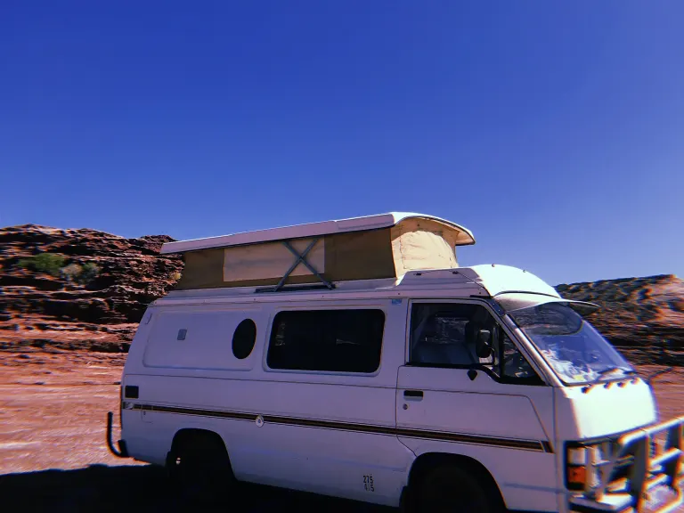 Do you wanna cruise in style? Send it back to the 80’s with this classic pin stripe camper. Automatic 1985 factory converted Toyota Hiace with pop-top, fridge, stove/grill and fold out double bed. Speakers and amp to groove up your journey and a fan to keep you cool. What more can you want? This campers ready for you to rock up in style and start your adventure...