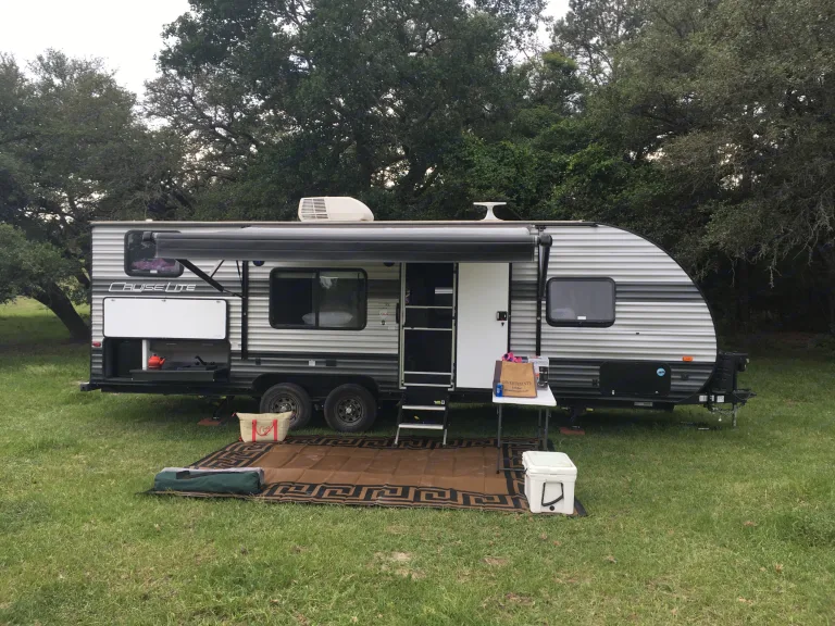 The trailer has blue tooth media stereo inside and out, blue LED lights on awning. Outdoor kitchen induction burner, sink and small refrigerator. Plenty of storage underneath trailer with an outdoor mat included for under awning. What's includedWe provide a fully stocked kitchen. This includes pots, pans, knives, spatulas, silverware and basic seasonings. There is a K-Cup coffee maker with coffee and mugs.