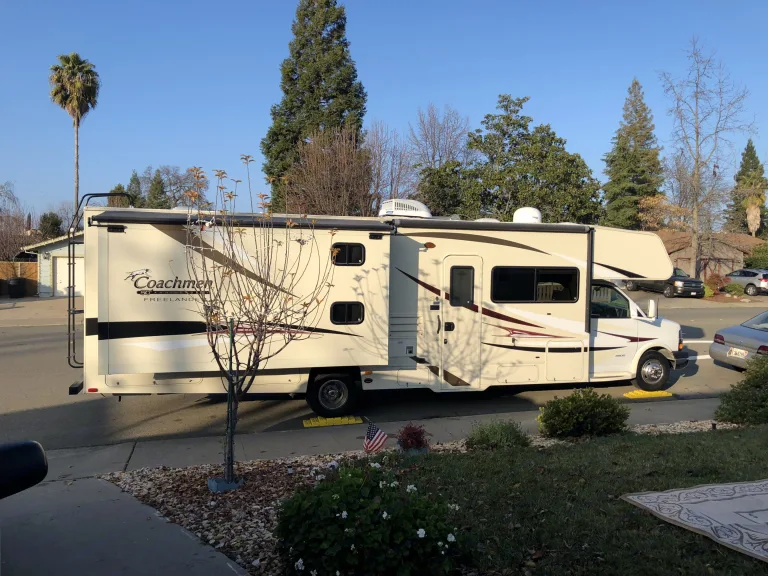 The RV has a fridge and small freezer as well as a microwave, oven and three burner stove top!The middle of the RV features two bunk beds each has their own 12 in color TV! Across from the bunk beds is the bath room which is roomy enough for my six foot five inch frame! I am not going to lie to you, i do have to keep my elbows tucked in while taking a shower, but I showered every day in our recent trip to Pismo Beach ca, and preferred it to the RV campground showers!The rear of the RV is the master bedroom that features a Queen size bed!!! There are plenty of closet storage and it features its own 24 inch TV!This RV rides like a Cadillac and is very smooth with airbag suspension, and a rear mount camera! The dashboard will tell you how many miles it has left to drive before it runs out of gas! The RV has a huge gas tank and can go an estimated 400 -500 miles (depending on mountain/valley driving) before it needs a refill!This RV has a powerful 6 liter engine, that easily does 75 miles per hour though my wife makes me keep it closer to 70, however passing big rigs is NO Problem!!! on the highway. Admittedly we have not yet taken it over the sierras to Reno Nevada, so I am not sure how it does on steep continuous climbs up the mounts to 7500 feet, but i guest that is a good reason for me to plan a trip to Reno Nevada!!! I will update this once i know!This RV has all the interior and exterior amenities you could want, and even features an out door TV and exterior system! For a roomy and comfortable RV that provides all the amenities my RV is amazing! . There is no carpet flooring, all the floors are vinyl and thick rubber mats for the driving areas so cleanup is Easy!!!