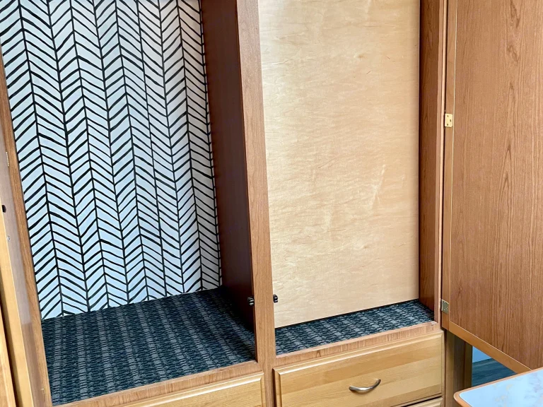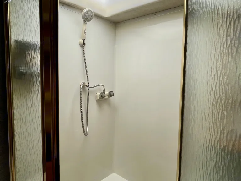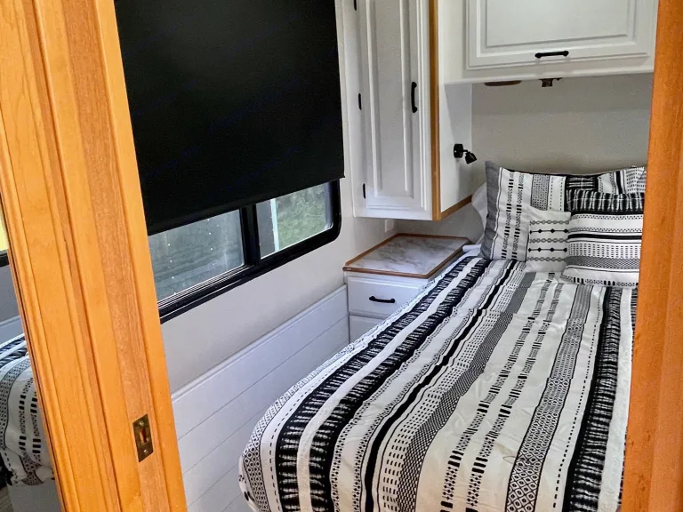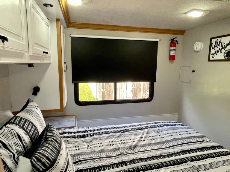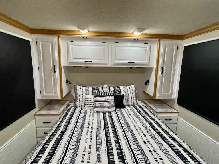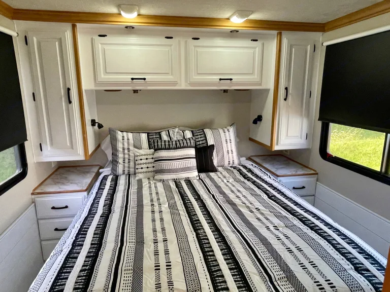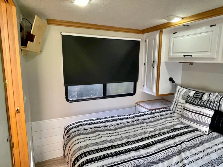 - Flat Screen TV mounted above in front of RV with a sound bar and subwoofer