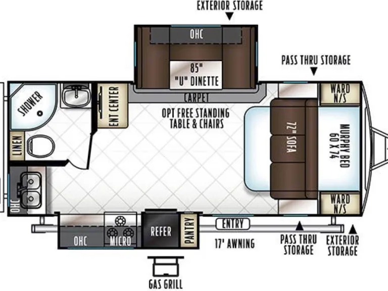 This beautiful right off the lot, fully stocked travel trailer will help make all your camping dreams come true. Whether you’re dry camping or staying at an Rv park she can handle either beautifully.Well Equipped for the perfect getaway with a 42” TV, WiFi capable with Hdmi and Aux inputs, built-in DVD/CD player, AC and heating, full kitchen and bathroom, Dinette (Sleeps 2 adults or 3 small children) Queen Murphy bed (sleeps 2 adults and 1 small child) that’s perfect to relax in after a fun-filled day outdoors. (Blow up twin bed included for any extra guest sleeps, 2 children or 1 adult) A gas grill is also included for all your BBQ needs, 17' Power Awning w/ LED Light for a perfect shaded area and excellent for night time lighting, an Indoor shower with a skylight to bring in the natural light or the beauty of a starry night and an Outdoor shower to wash off after a day at the river or beach. You will fall in love with The Dream Escape we guarantee.*Fully stocked kitchen, bathroom, and bedroom all amenities included for the perfect getaway at NO Extra Charge.