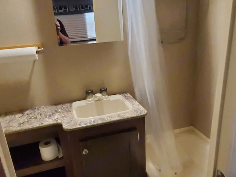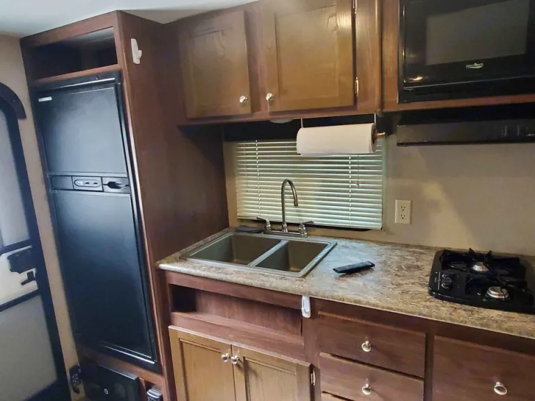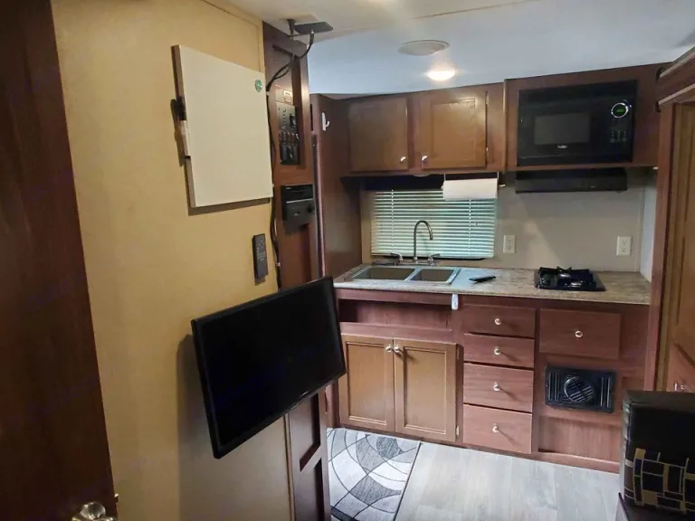 The rear private bedroom includes a Full size bed with overhead cabinets. The wall opposite the living room area is part of a full wall slide out and offers two closets and a LED TV.Continuing in the slide out, the kitchen includes a medium size refrigerator, two burner range, overhead microwave, corner angled kitchen sink, counter space, and overhead cabinets for your dishes and things. A sofa bed completes the slide.The overhead cabinets above the dinette continue over the entry door for more room for all your cooking and camping items.The bathroom includes a vanity area, sink, toilet, and a shower.There are many more standard features in this amazing vehicle that you will love.What's includedThank you for looking at our beautiful RV…. Your HOME AWAY FROM HOME. Daily rental fee includes Bed sheets, pillows, towels, Keurig coffee maker with coffee pods , utensils, cookware plastic dishes, bowls and cups. 2 beach chairs.