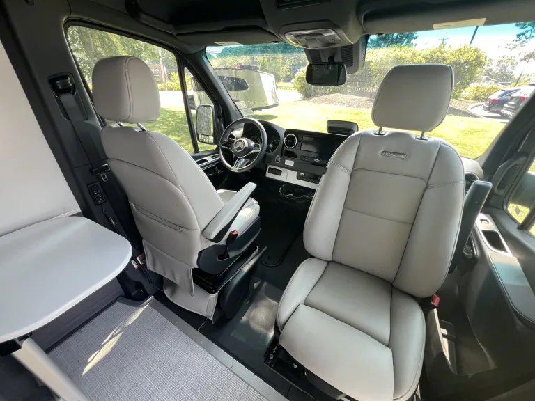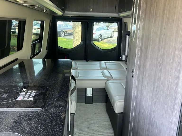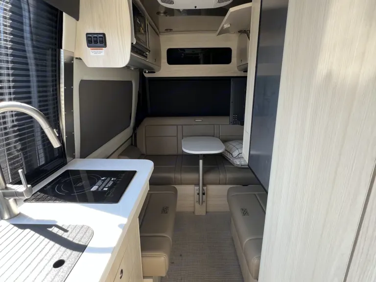 Step inside, find luxury redefined: Ultra leather seating embraces you after a day of discovery; the signature aluminum ceiling and marine-grade flooring evoke timeless adventure; a rear power sofa effortlessly converts to your haven for two. The well-appointed kitchen—induction cooktop, convection microwave, spacious fridge—invites gourmet meals wherever the road leads. Refresh in the private wet bath with on-demand hot water or unwind beneath the power awning’s LED glow or rinse off under the open sky with an exterior shower.
