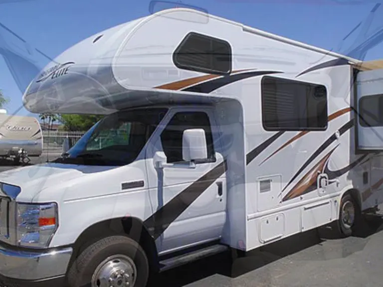 Step inside this beautiful motor home that features a rear bath, queen bed, overhead bed, and a large dinette that converts into a bed. You will find the queen bed on the rear slide out. Above the cab you will find another bed. The kitchen is beautifully equipped with a stove, oven, microwave, and refrigerator/freezer combo. The bathroom is very functional and includes a shower, toilet, and sink. The Thor is sitting on a Ford E450 chassis with a V-10 engine and an automatic transmission. This unit sleeps 6 comfortably.