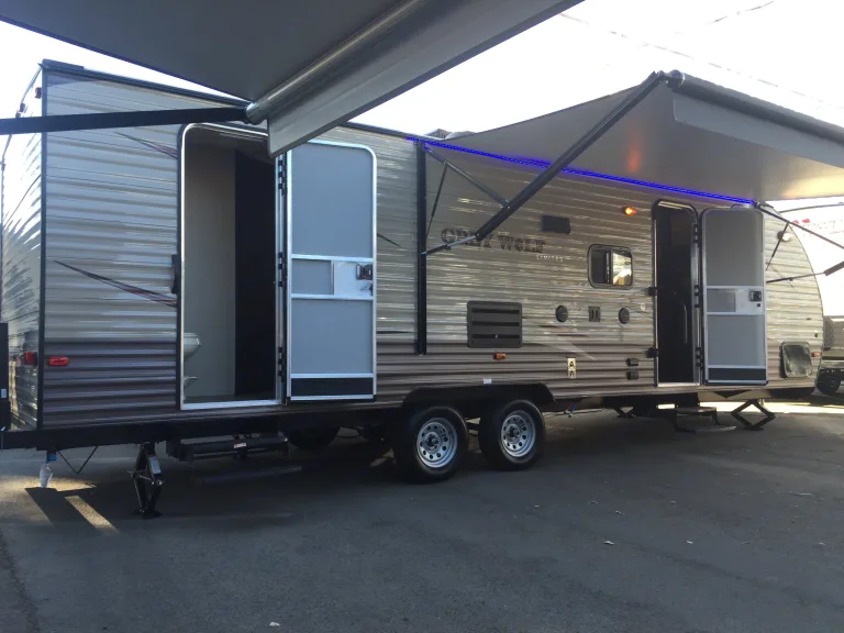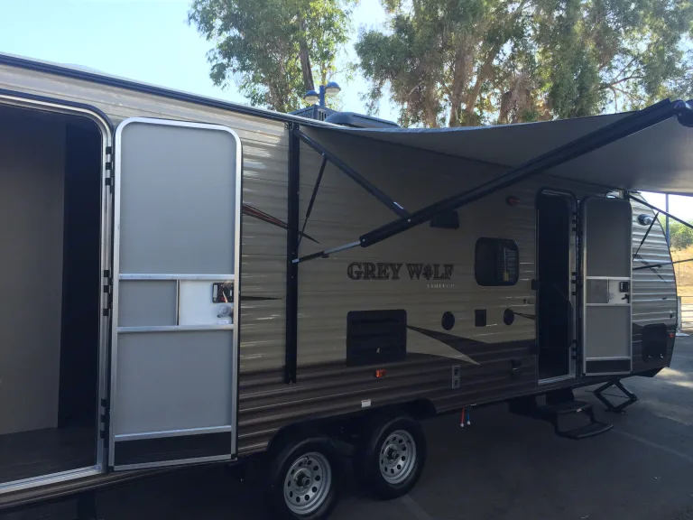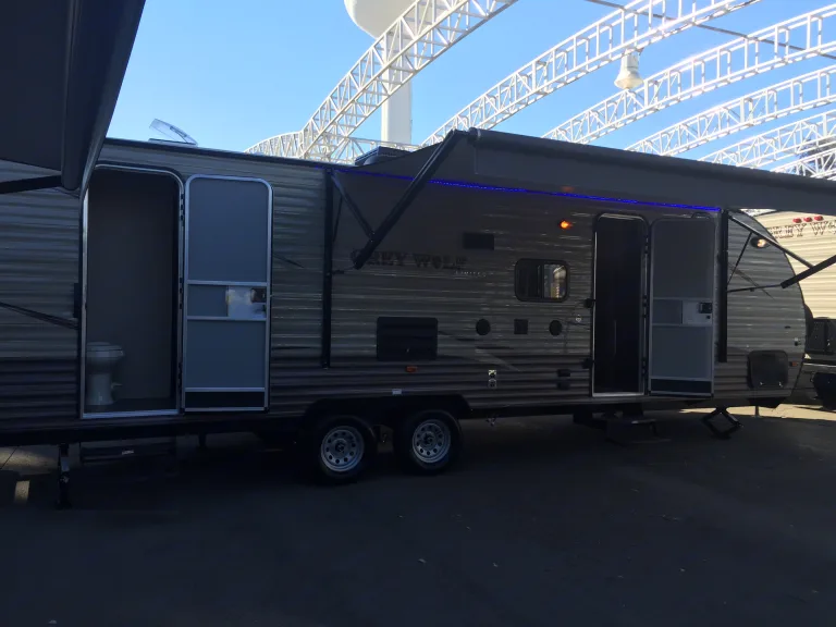 This Cherokee Grey Wolf by Advantage Caravans is an RV for rent in Sacramento, CA. This 2017 Cherokee Travel Trailer is 26 feet and can sleep 8 people. It has 1 slideout.Enjoy the features of this rental such as a TV, refrigerator, oven, stovetop, microwave, and awning to relax under. This non-smoking recreational vehicle has a rental rate of $120/night, with a 4 night minimum. During Burning Man, this rental is available with a 7 day minimum. Before we forget, this RV rental also has dumping and cleaning add-ons, just to name a few. Interested in learning more? Scroll below for more add-on details, rules, insurance coverage, rates and floor plans.