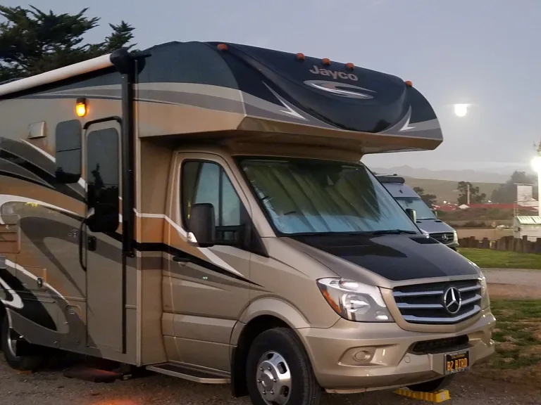 2017 Mercedes Benz Diesel 188 HP Jayco Melbourne 24K sleeps four. No Burning Man or Pismo Beach camping!! Very clean motor home and original owner. Vehicle gets 16 MPG using turbo diesel engine and can maintain speeds at 65 MPH climbing the largest mountains in California. Vehicle sleeps 2 adults and 2 children (up 5' 6" tall). If you have adults or big kids that would prefer to have their own "home" you have an option to rent a tent camping package for two persons.