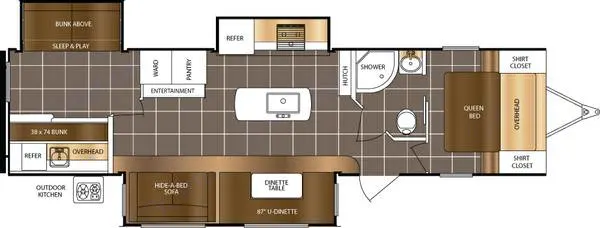 Residential style furniture, appliances and fixtures fill this deluxe bunkhouse, with three slides and exterior kitchenette this great trailer is fit for the whole family!What's included• • Sewer Hose