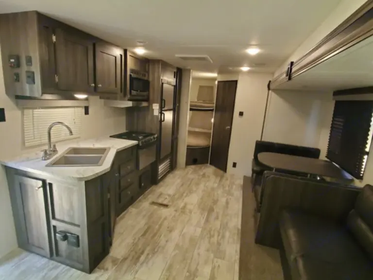 this ridge is perfect fit for a family camping of six people, it has three bed, and a sofa which can also be a bed for a kid, bathroom has toilet sink shower, and small storage cabin, dining table refrigerator dash washing sink oven storage cabins master bedroom with some cabin and storage, hot and cold water and kitchen tools etc, What's includedsame kitchen tools, toilet paper, cleaning stuff, mob, paper towel, RecommendationsCalifornia is a perfect place for camping with all these lakes around it.Other things to noteI would be happy if you check everything at the beginning.